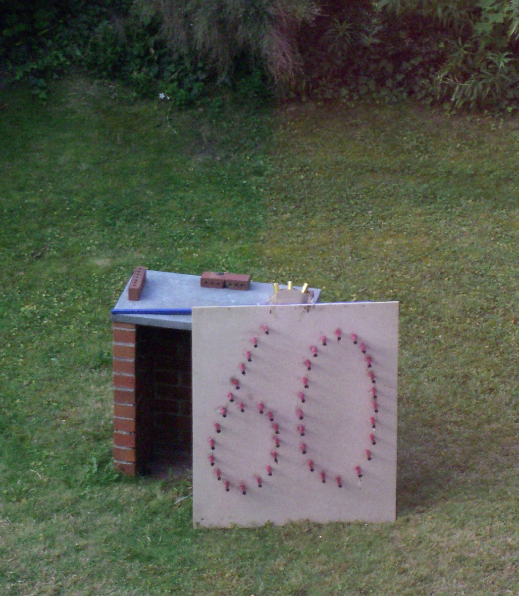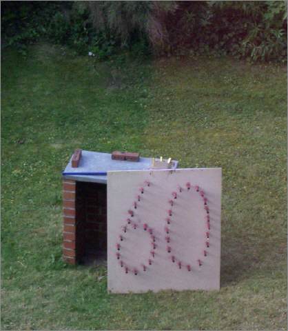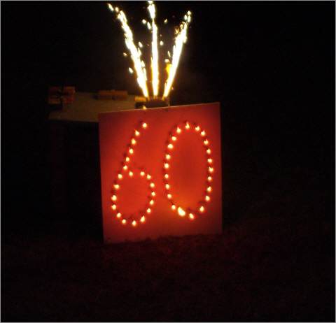 Eine brennende Geburtstagszahl auf einer Fläche von etwa 100x120 Zentimetern.