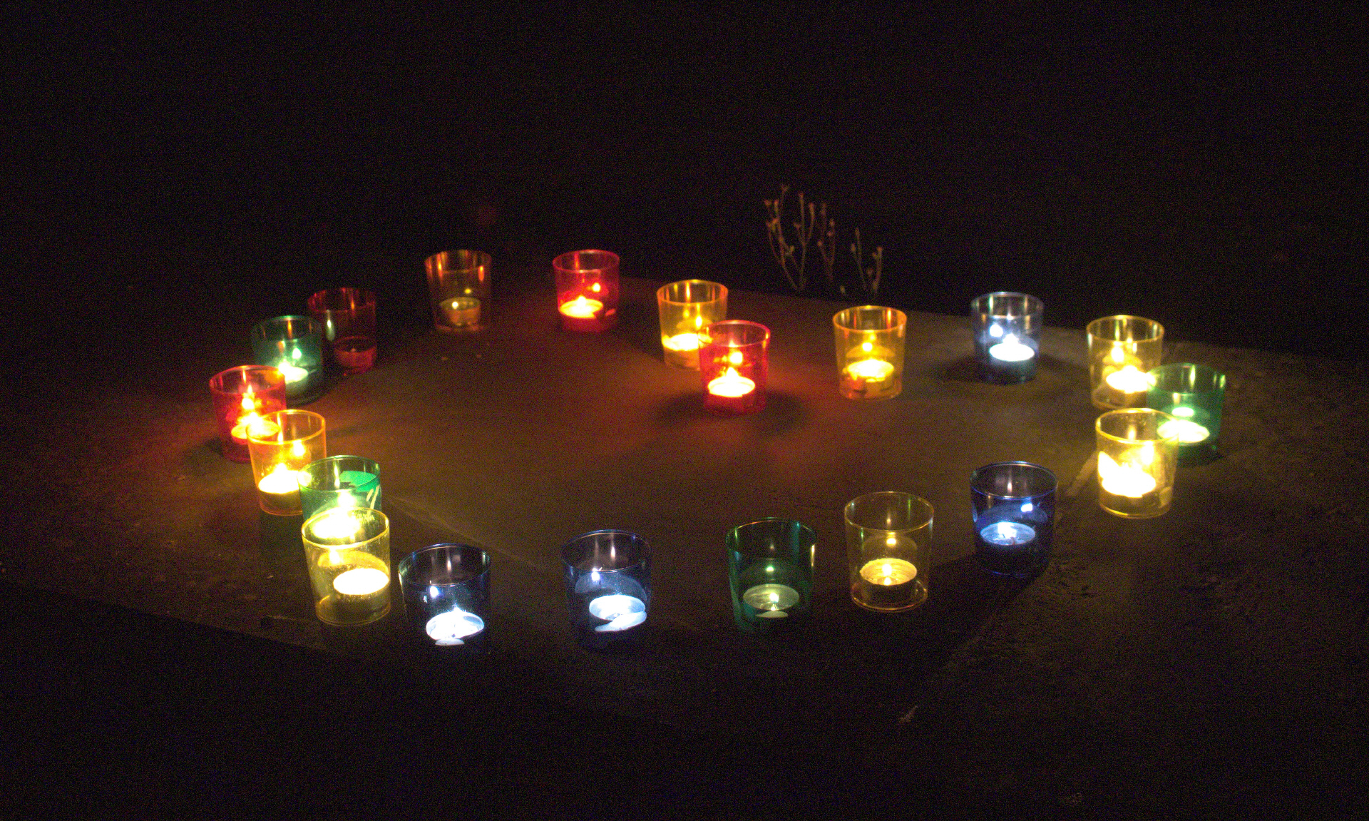 In jeden Illuminationsbecher wird ein handelsübliches Teelicht gestellt, dass zwei bis drei Stunden brennt.